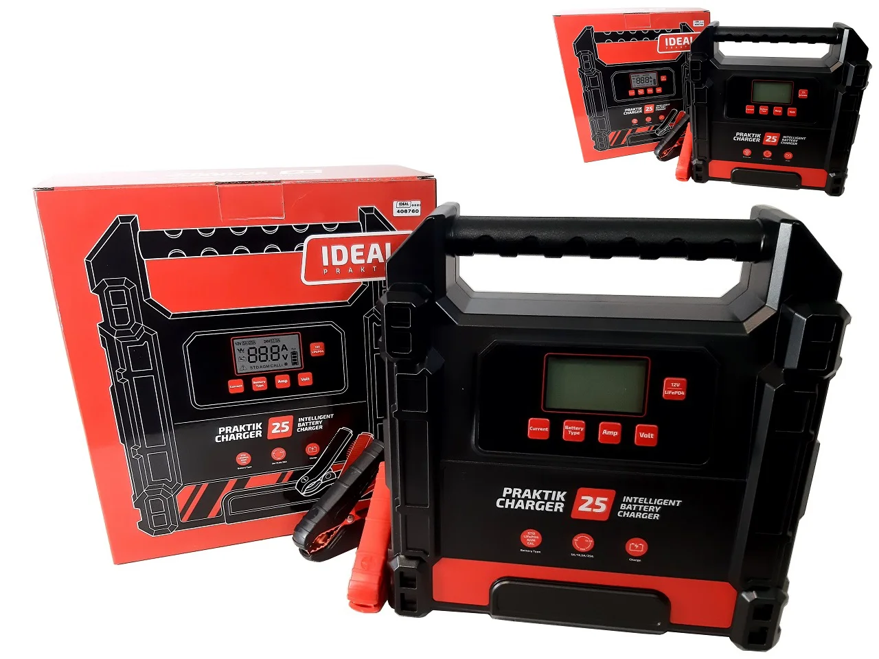 PRAKTIK CHARGER 25 jest elektronicznym prostownikiem do ładowania 12 i 24 woltowych akumulatorów kwasowych: