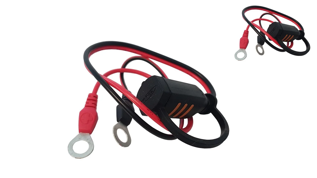 Złączka CTEK Comfort Connect służy do wygodnego podpinania ładowarki CTEK do akumulatora zamontowanego w pojeździe lub trudno dostępnym miejscu. Oczka są montowane na stałe do zacisków akumulatora, a zaopatrzona w ochronny kapturek wtyczka jest umieszczana w jak najwygodniejszej lokalizacji.