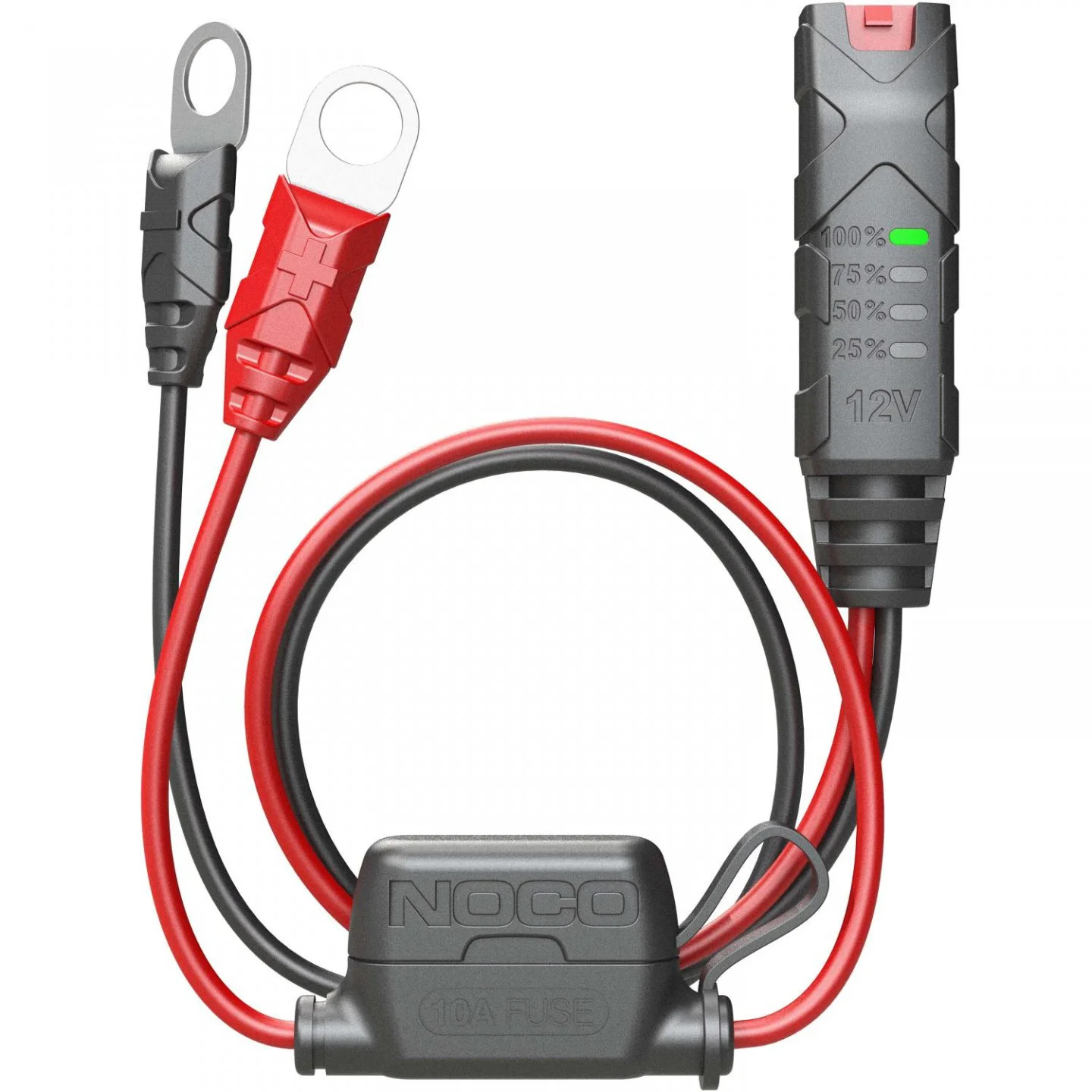 Przewód Eyelet Battery Indicator zaprojektowany jest do ładowarek NOCO Genius, pozwala na szybkie podłączenie ładowarki do akumulatora z pominięciem zacisków typu "krokodyl". Przewód ten należy na stałe podłączyć do akumulatora, następnie w razie potrzeby ładowarkę NOCO bezpośrednio do przewodu Eyelet Terminal Connector. Kabel jest bardzo prosty w obsłudze z jednej strony zakończony jest wtyczka pasującą do ładowarki NOCO, a z drugiej mocowaniami M6 które mocujemy bezpośrednio do klem samochodowych.