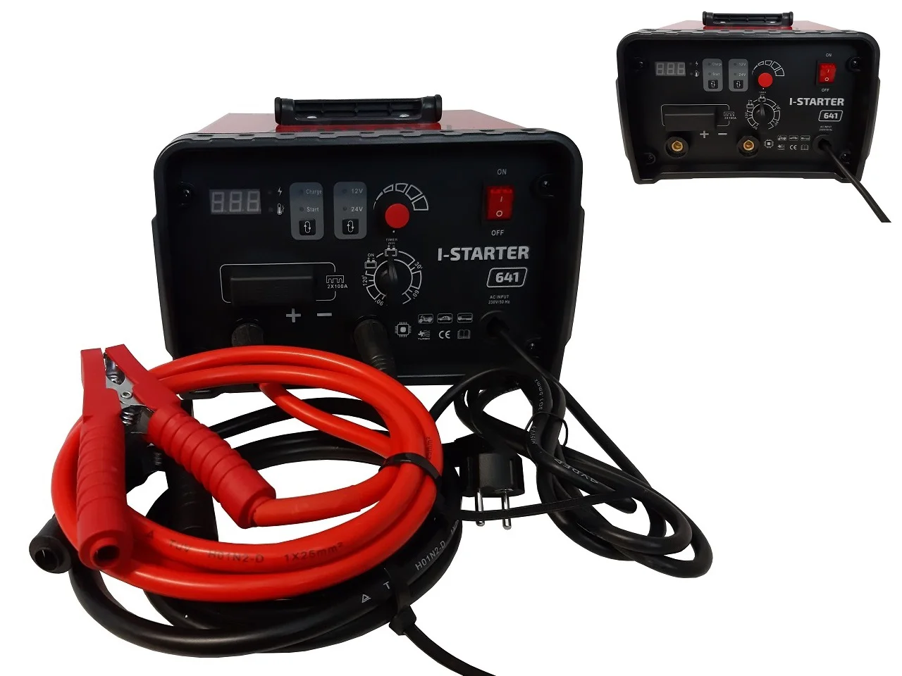 I-STARTER 641 jest inwertorowym prostownikiem do ładowania 12 i 24 woltowych akumulatorów kwasowych, posiadający funkcję rozruchu samochodów z silnikami benzynowymi oraz diesla (w tym vanów, lekkich ciężarówek i traktorów).
