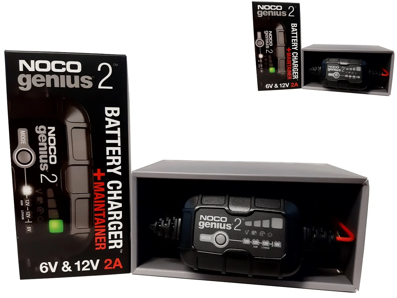 NOCO GENIUS 2-EU to ładowarka amerykańskiej firmy NOCO. Nadaje się do ładowania akumulatorów o napięciu 6V i 12V. Dzięki zaawansowanej technologii pozwala na ładowanie akumulatorów kwasowych, Ca/Ca, EFB, AGM, GEL oraz LITHIUM.